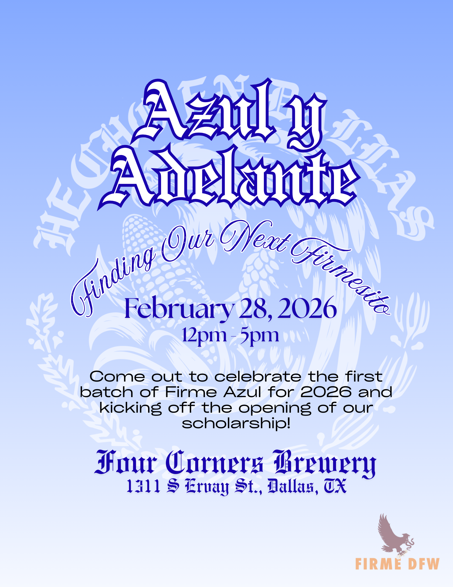 Join us on February 28th from 12pm - 5pm as we celebrate the opening of our Scholarship Application for 2026! We are excited to find our next Firmesito and continue expanding our reach in the community.